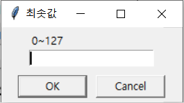 value2 = askinteger("최솟값", "0~127", minvalue=0, maxvalue=127)